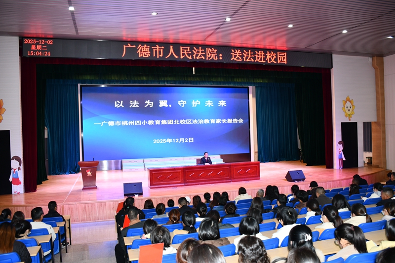 市场星报、安徽财经网(www.ahcaijing.com)、掌中安徽讯(胡庆薇 曹开发)近日,广德市人民法院组织干警前往桃州四小北校区,开展“送法进校园”普法宣传活动。该院诉讼服务中心副主任楚道山围绕未成年人保护与家庭教育责任,为现场400余名学生家长作法律宣讲与家庭教育指导。