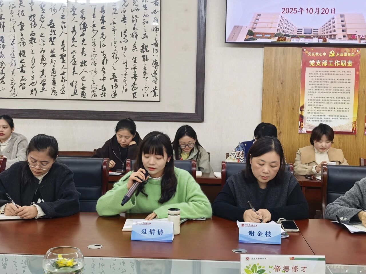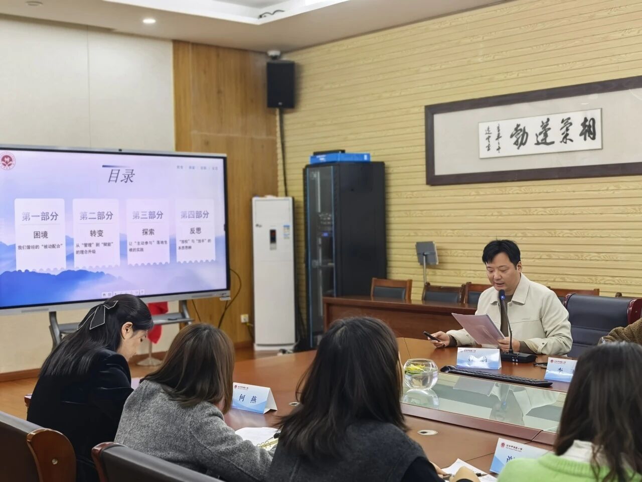 随后,陆星老师分享《德育报》与《辅导员》队刊的学习心得。她不仅深入畅谈理论学习的收获,更结合班级管理实践,详细分享了强化学生自我解决问题意识等具体方法,将理论有效转化为德育实效,充分展现出班主任队伍学思结合、学以致用的专业追求。