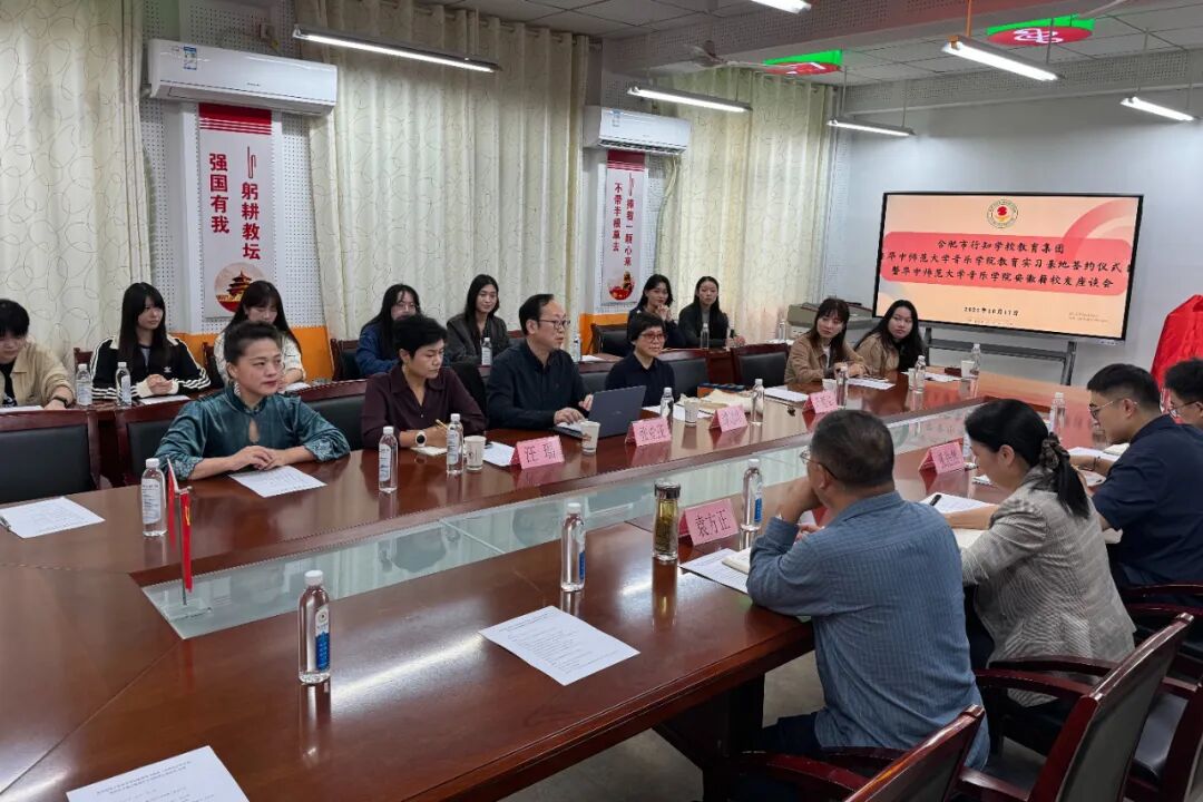 2025年10月17日15:00,华中师范大学音乐学院教育实习基地(合肥市行知学校)签约仪式暨安徽籍音乐学院校友座谈会,在合肥市行知学校教育集团漕冲校区问道楼二楼会议室举行。
