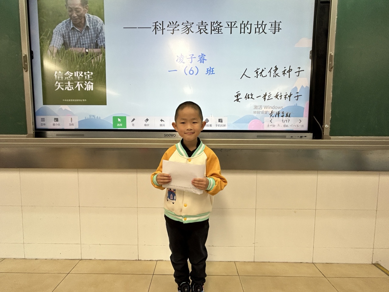 全员参与人人讲,主题班会展风采。10月13—17日各班开展“讲述科学家故事 弘扬科学家精神”主题班会(初赛),每位同学在班会上分享一位科学家的故事,全体同学都参与到活动中来。真正做到了让科学家故事在同学之中传递,让科学家精神在同学心中铭记。经过各班海选、推荐,各班择优推荐1-2名同学按要求进行音频录制,提交给语文组进行校级评选。