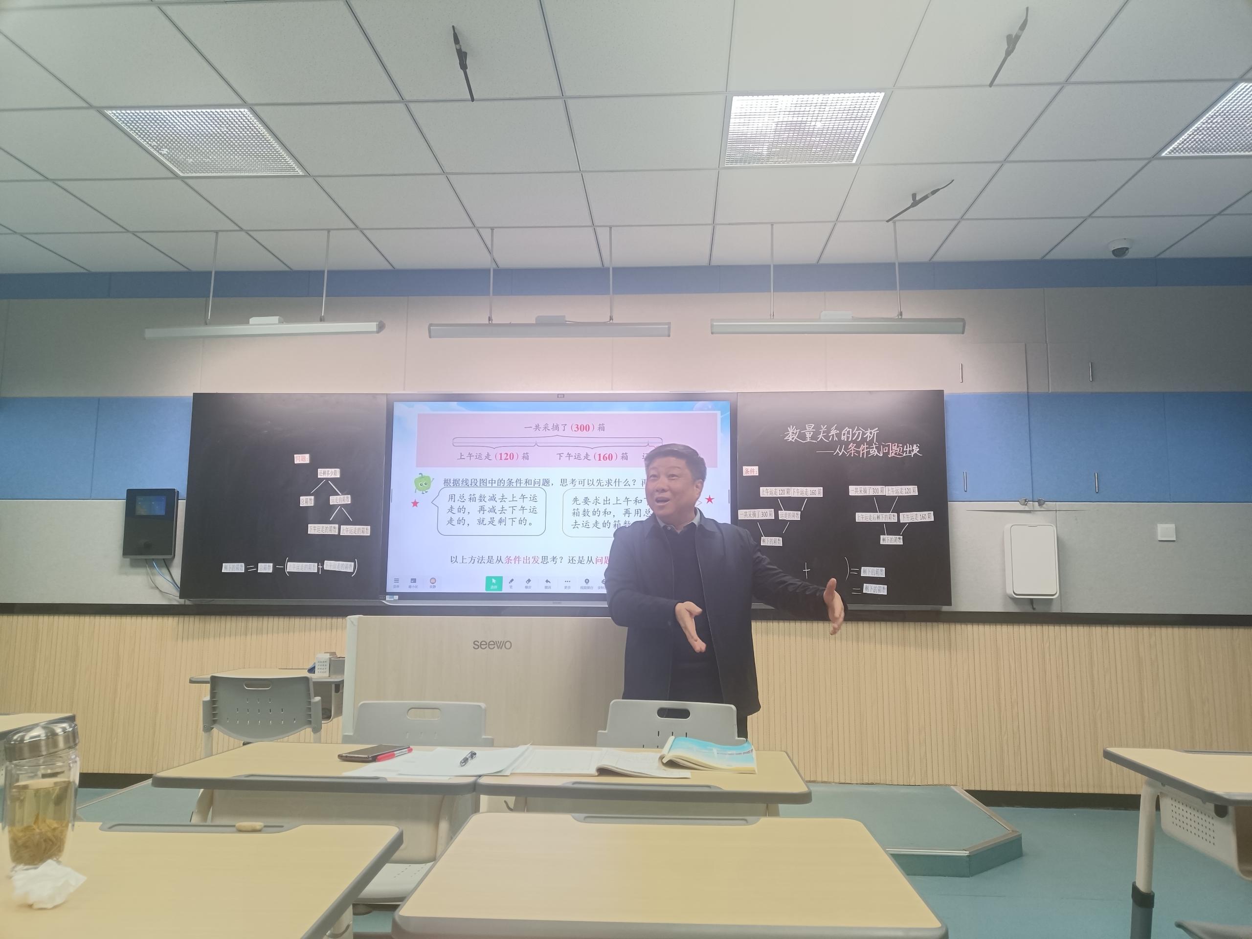 10月22日下午,合肥市建平实验小学锦绣校区数学组举办了一场新苏教版三年级《从条件或问题出发分析数量关系》数学公开课,本节课由束静老师执教,还邀请了数学专家葛余刚前来指导。