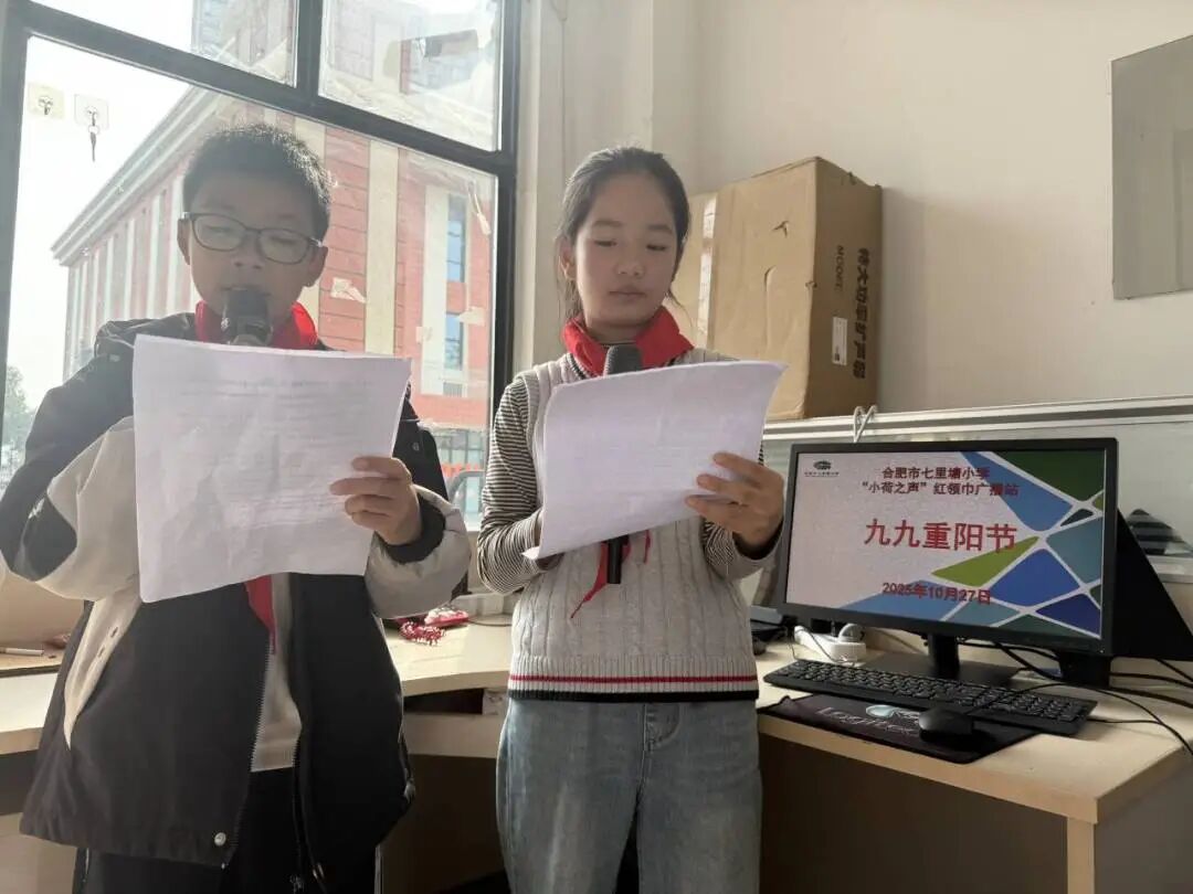“小荷之声——红领巾广播站”同步推出重阳特别节目。播音员讲述了“桓景除瘟魔”的传说,结合王维诗句解析节日情感,并设置互动环节,邀请学生分享“我知道的重阳故事”,在趣味问答中深化对习俗与文化的理解。