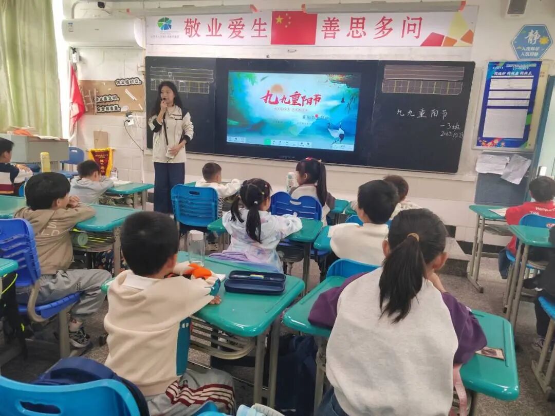 各年级还开展了形式多样的主题班会。低年级通过“习俗连连看”“诗词大会”等游戏认识重阳传统;高年级学生担任“文化小讲师”,自主探究重阳节的历史演变。班会中设置的“孝心问答”环节,引导学生思考“为何敬老”“如何行动”,推动传统美德内化于心、外化于行。
