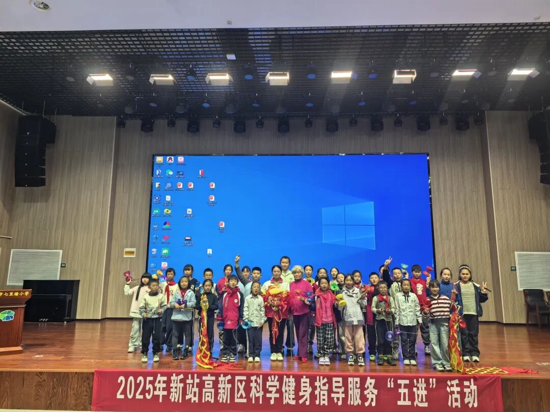 为深入推进科学健身理念的普及,传承弘扬中华优秀传统文化,2025年10月30日下午,2025年新站高新区科学健身指导服务“五进”活动走进合肥市七里塘小学。本次活动聚焦舞龙与空竹两大传统民俗项目,一百余名四年级学生及学校空竹社团成员踊跃参与,在欢乐互动中感受传统文化魅力,在肢体舒展中践行科学健身理念。