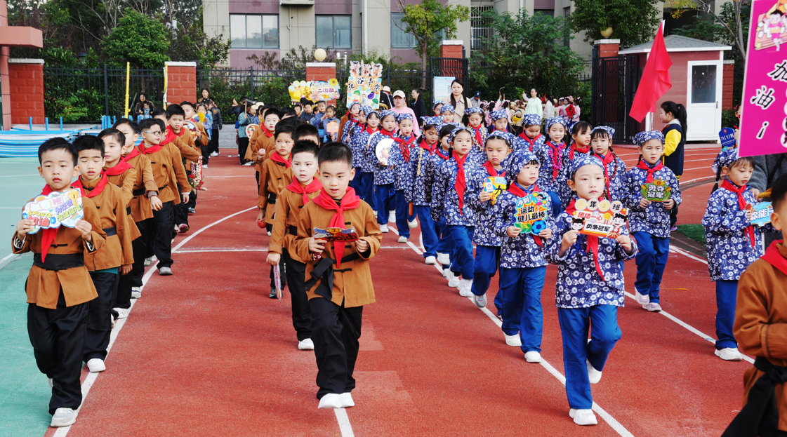 在激昂的《运动员进行曲》中,运动会开幕式正式启动。各班级方阵创意纷呈: