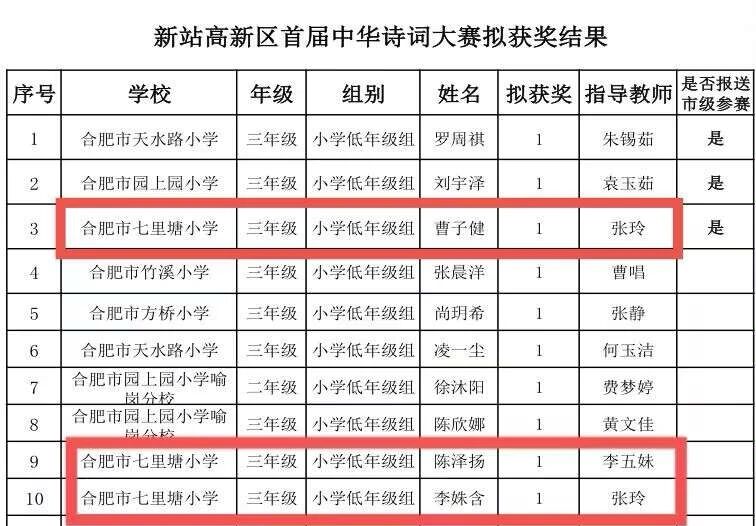 近日,合肥市新站区首届“庐州杯”中华诗词大赛圆满落幕。合肥市七里塘小学学子不负众望,在赛场上展现出深厚的诗词底蕴与绝佳风采,最终斩获4个一等奖,1个二等奖,一个三等奖,充分展现了学校深厚的文化育人底蕴与学生卓越的综合素养。