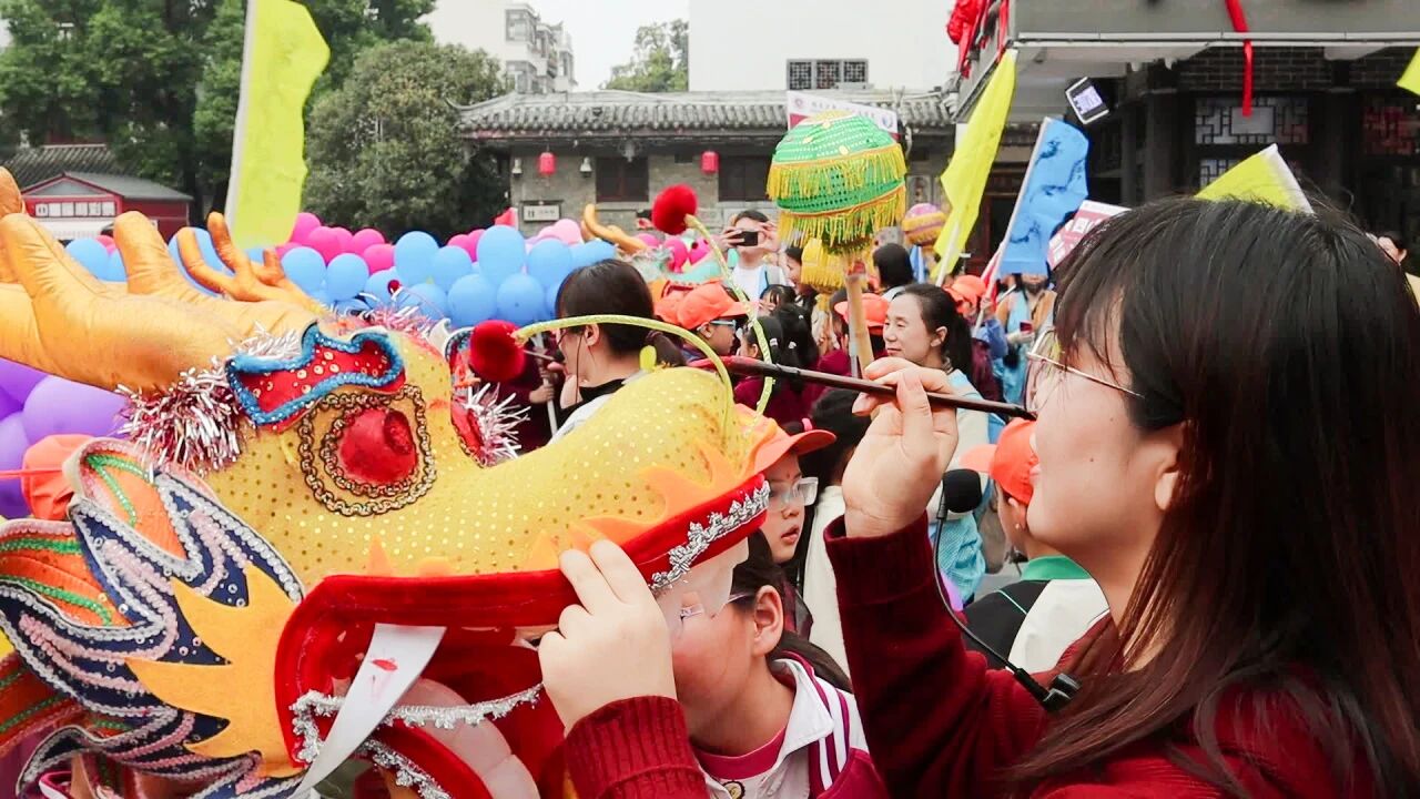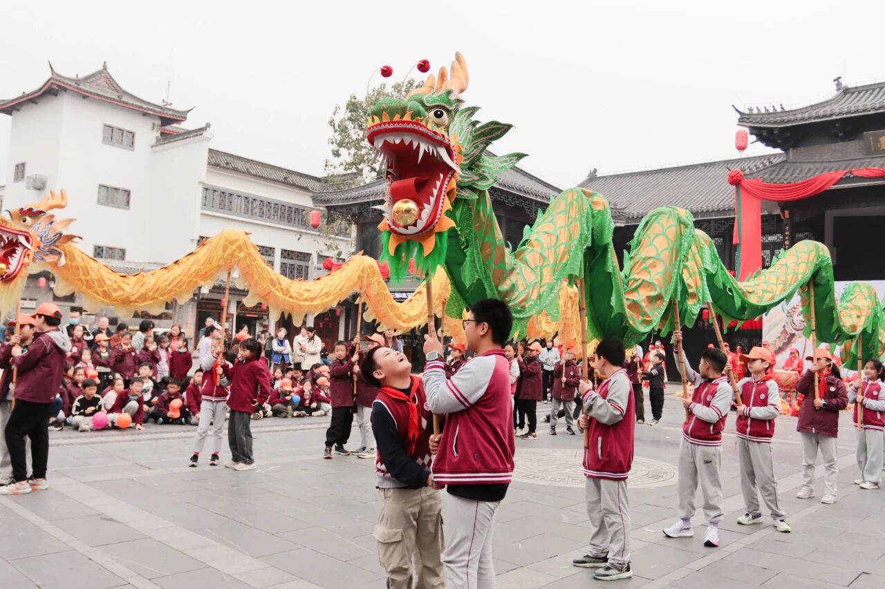 当天下午,孩子们沉浸式体验古镇文化:观看精彩舞龙表演,聆听三河民俗讲解,还在老师指导下制作龙形道具、学习舞龙打鼓。伴着整齐鼓声,“长龙”在孩子们手中舞动,欢声笑语里,对传统文化的热爱愈发深厚。