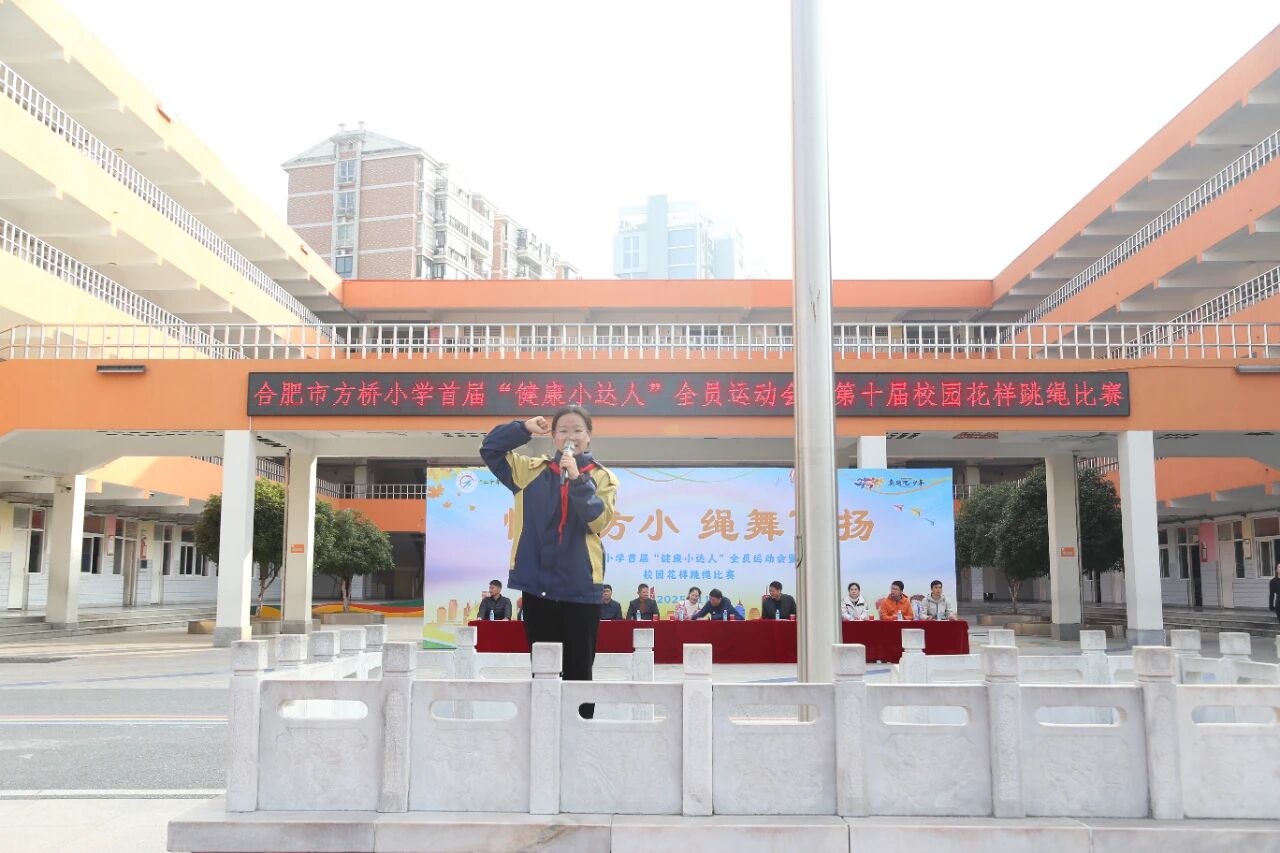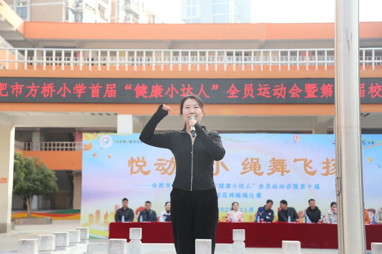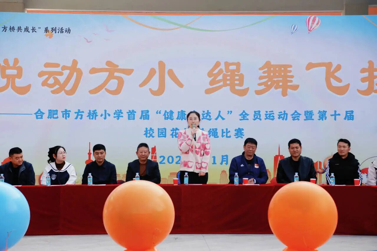 嘉宾郑媞郑重宣布合肥市方桥小学首届“健康小达人”全员运动会暨第十届校园花样跳绳比赛开幕。本次活动覆盖1-6年级全体学生,按年级划分为6个组别,精心设置了跳绳(60秒)、50米跑、坐位体前屈、仰卧起坐、立定跳远、50米×8往返跑等多个竞赛项目,所有项目均贴合不同年龄段学生的身心发展特点,既考验体能又兼具趣味,让少年们在运动中尽情释放活力。