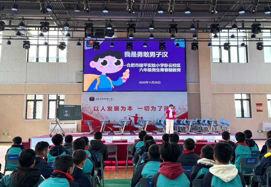 2025年11月25日,合肥市建平实验小学卧云校区风雨操场内暖意融融,合肥市建平实验小学教育顾问王叶频校长以《我是勇敢男子汉》为主题,为六年级全体男生带来一场兼具科学性与趣味性的青春期专题教育讲座,为少年们的成长答疑解惑。