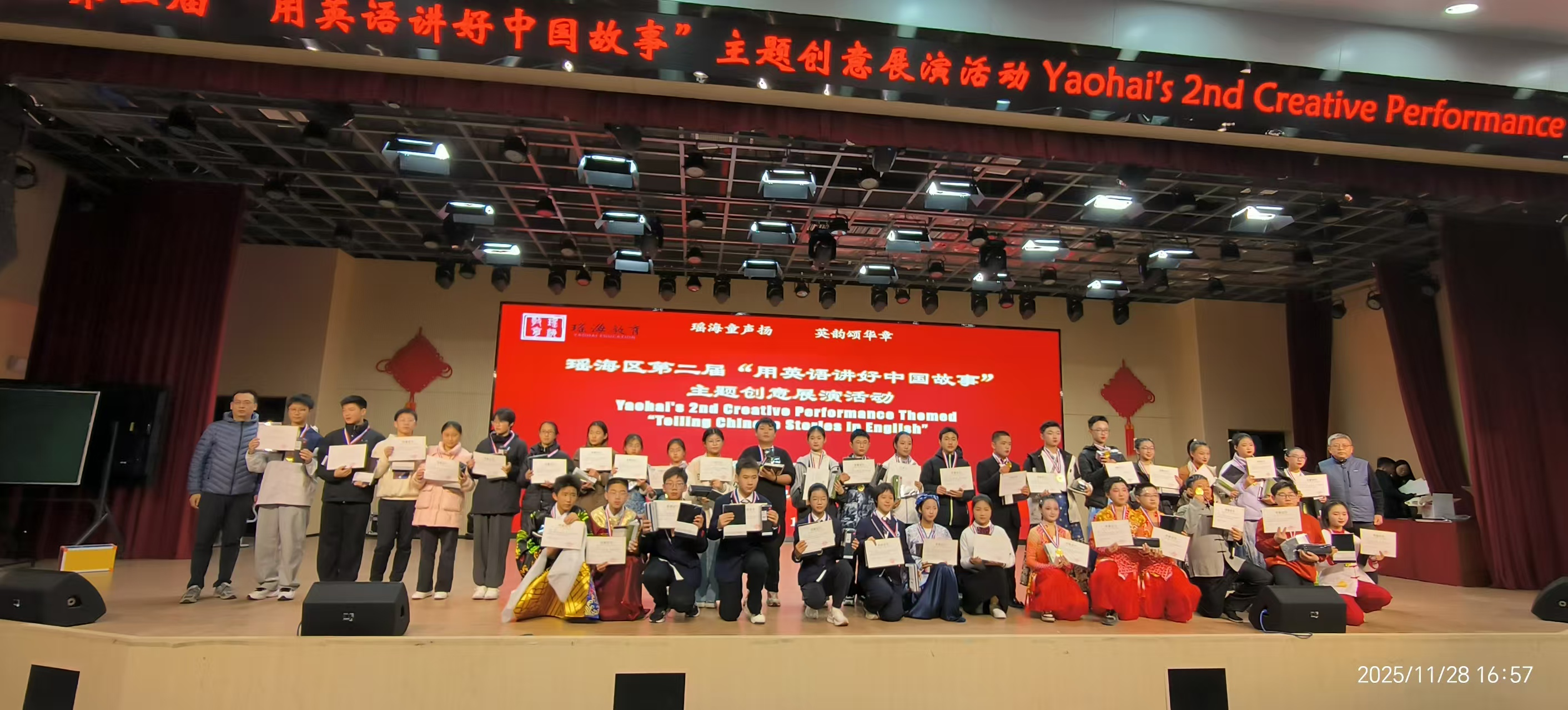 11月28日,合肥市瑶海区第二届“用英语讲好中国故事”主题创意展演活动圆满落幕。来自合肥市行知实验中学八一班的优秀学子们,凭借精湛的舞台表现力与高度默契的团队协作,在激烈角逐中脱颖而出,最终成功摘得本次比赛特等奖桂冠,为学校和团队赢得了耀眼荣誉。