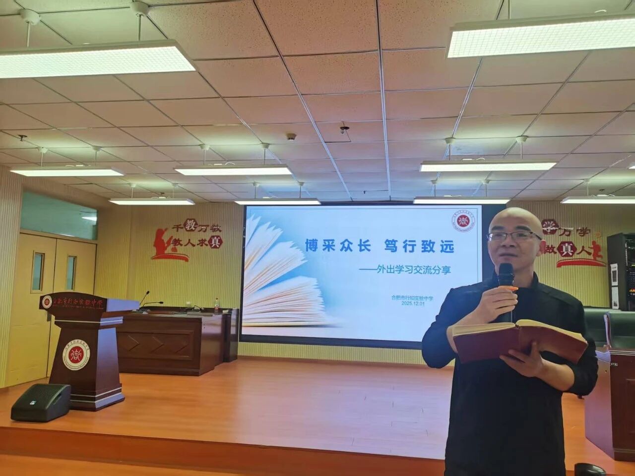 12月1日下午,合肥市行知实验中学在五楼会议室围绕“博采众长 笃行致远”主题组织开展外出学习交流分享活动。活动由科研处主任孔铭主持,全体教师参与。