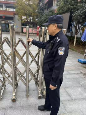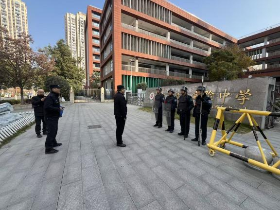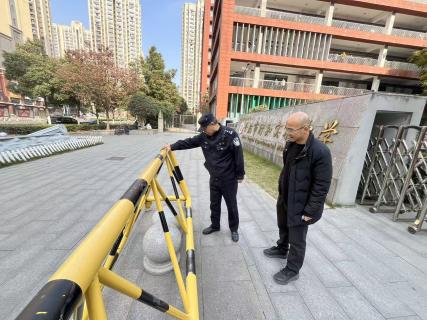 校门安全是校园安防的重中之重。法制副校长一行实地检查了校门口防冲撞设施的布设与性能,细致查验了安保“八大件”的配备是否齐全、状态是否良好,并现场考核了安保人员器械使用熟练度。同时,对门岗执勤纪律、外来人员登记制度落实情况进行严格督查。殷副校长指出:“安保人员是校园的‘守门人’,必须时刻保持警惕,做到装备在手、责任在肩。”