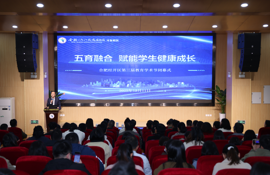 12月11日上午,学术节闭幕式在合肥一六八玫瑰园北校习友校区隆重举行,为本次活动画上圆满句号。中国教育学会常务副会长吕玉刚应邀作题为《办好办强基础教育 夯实教育强国基点》的主旨报告。在经验分享环节,合肥一六八玫瑰园学校东校教育集团马敏分享了赴上海挂职学习的先进经验;合肥明珠教育集团芙蓉小学李根华校长汇报了干部培训的管理优化心得;陈忠好校长则系统介绍了名校长工作室的建设与辐射引领成效,展示了经开区在校长队伍培养方面的机制探索。