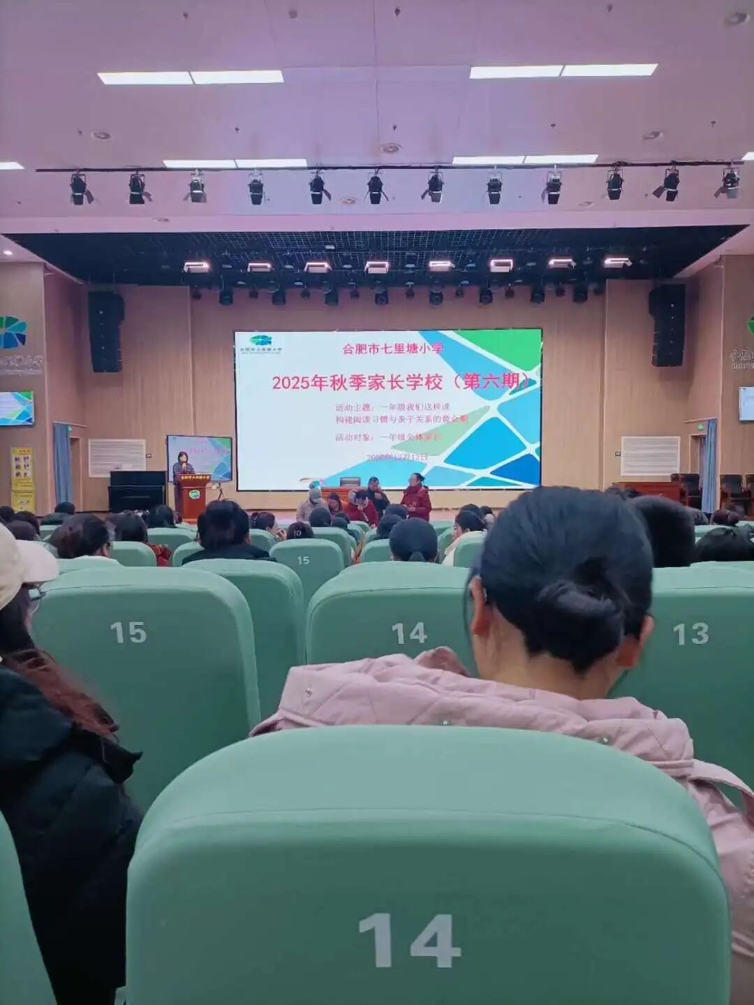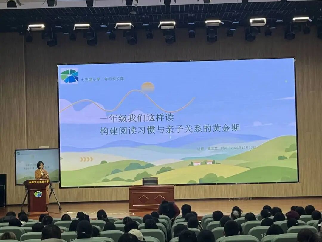 一年级是孩子阅读习惯培养的关键启蒙阶段,亲子共读则是搭建亲子情感桥梁、助力孩子成长的重要方式。为帮助家长掌握科学的亲子阅读方法,破解育儿困惑,凝聚家校共育合力,12月12日下午,合肥市七里塘小学家长学校专为一年级家长打造的“一年级我们这样读”亲子阅读专题家长课温情开讲,特邀青少年心理与家庭教育专家董兰兰老师莅临指导,为在场家长带来一场干货满满、温暖实用的成长分享。