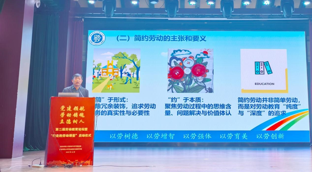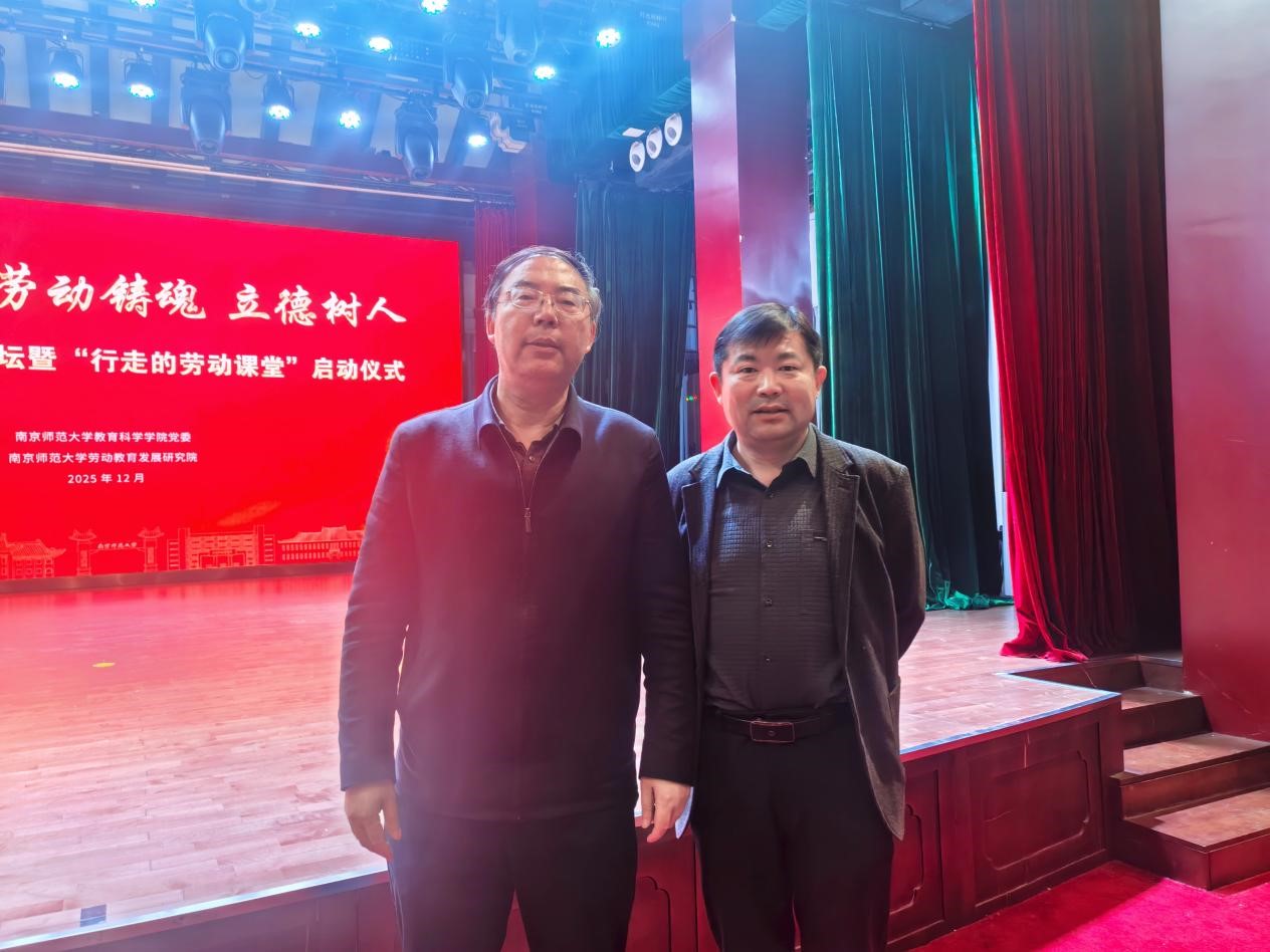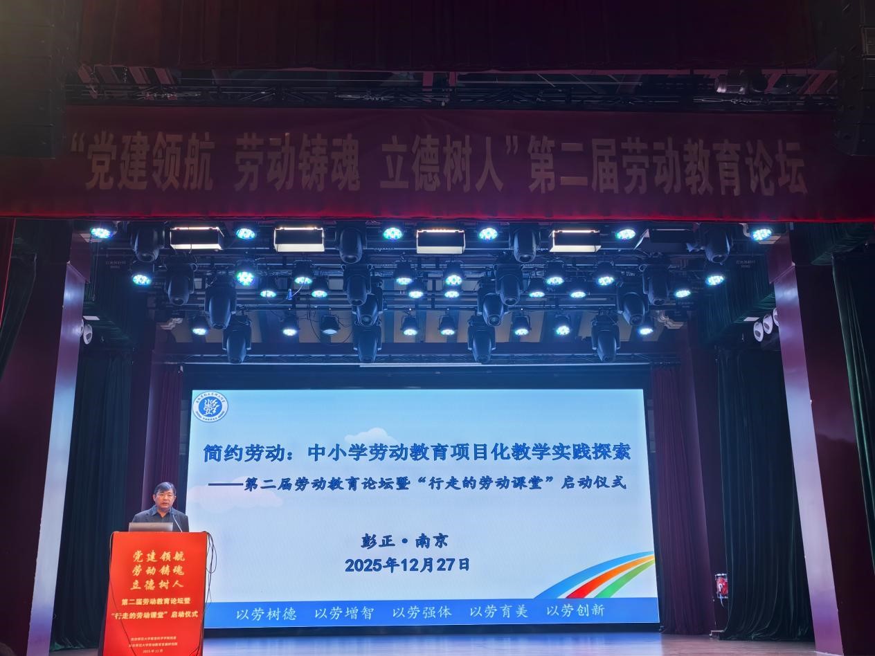 为进一步开拓视野、更新劳动教育理念,提升工作室成员专业素养,2025年12月27日,安徽省彭正名师工作室组织工作室成员赴南京师范大学随园校区,参加第二届劳动教育论坛暨“行走的劳动课堂”启动仪式活动。本次活动由南京师范大学教育科学学院主办,聚焦“党建领航 劳动铸魂 立德树人”主题,汇聚国内劳动教育领域专家学者与一线教育工作者,为劳动教育创新发展搭建了交流平台。