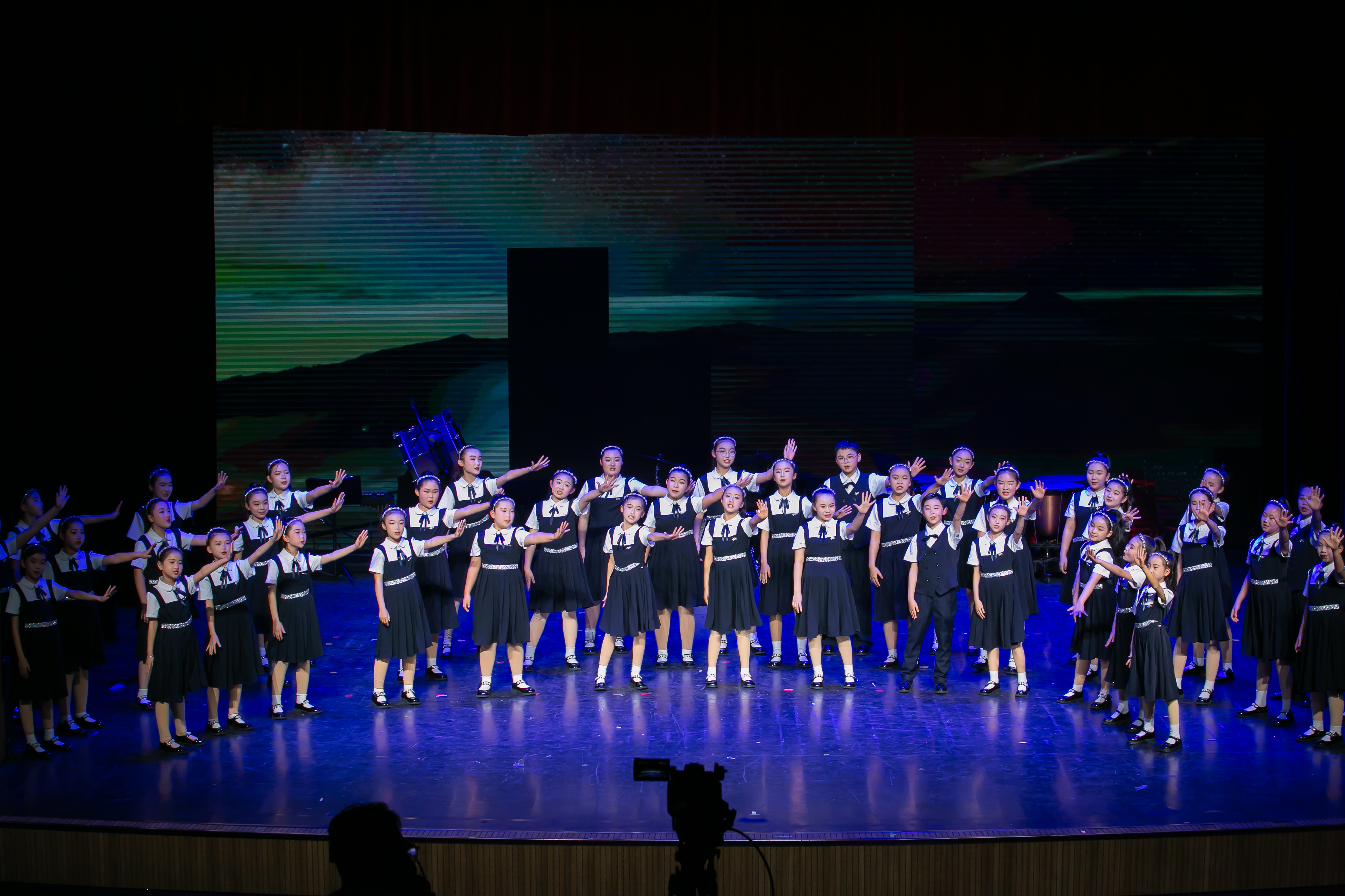 思政在旋律中延伸。“雏鹰”表演团以《祖国不会忘记》致敬默默奉献的时代背影;国际部师生用朗诵表达“强国有我”的青春担当;王君蕊老师的独唱真挚动人;四川都江堰实验中学通过视频送来《灯火里的中国》,绘就新时代温馨画卷。《我的中国心》《当那一天来临》接连响起,汇聚成炽热而坚定的时代和声。
