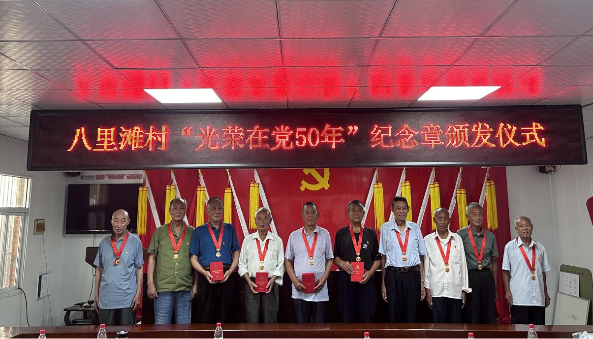 活动现场,村党支部为党龄满50周年的老党员代表隆重颁发“光荣在党50年”纪念奖章。沉甸甸的奖章,不仅是对老党员们半个世纪坚守初心、忠诚奉献的高度赞誉,更是一堂生动的“党课教材”。老党员们抚摸着奖章感慨万千,眼角闪烁着激动的泪花,现场掌声雷动,传递着对他们的崇高敬意。