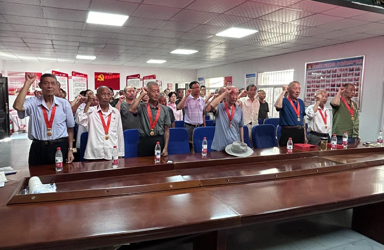 在宣讲环节,佩戴纪念章的老党员们化身“红色讲师”,结合自身经历,将大家带回激情燃烧的岁月。他们用质朴的语言,深情讲述了在党的领导下,参与家乡建设、投身艰苦斗争的难忘故事。从缺衣少食却坚守岗位的奋斗时光,到带领群众战天斗地、改变乡村面貌的实干历程,一个个鲜活的故事,既展现了他们对党的无限忠诚,也让在场的党员群众深刻感受到老一辈共产党员不畏艰难、一心为民的精神品格。