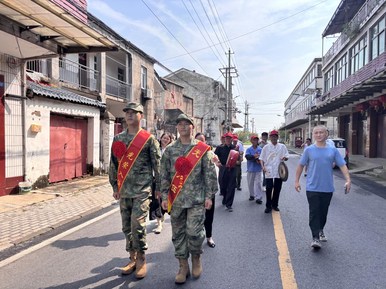会议结束后,严店镇苏小社区又举办了欢送仪式,两位新兵身着迷彩服、胸戴大红花,在欢快的唢呐声与热烈的欢呼声中踏上街道,村民们沿街列队挥手送别,以最朴素的行动传递“一人参军,全村骄傲”的真挚情感,目送好儿郎奔赴军营、开启崭新征程。