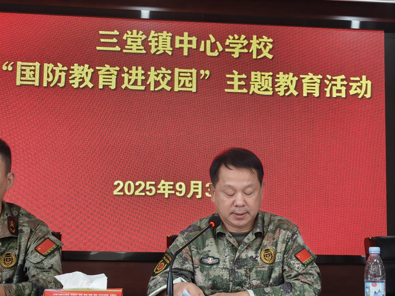 2025年9月30日下午,太和县三堂镇中心学校隆重举行“国防教育进校园”主题报告会。活动采取线上线下同步直播的方式开展,由三堂镇中心学校校长刘胜楠主持,特邀三堂镇党委委员、武装部部长郑华义同志作专题报告,为全校师生带来一场生动而深刻的国防教育盛宴。