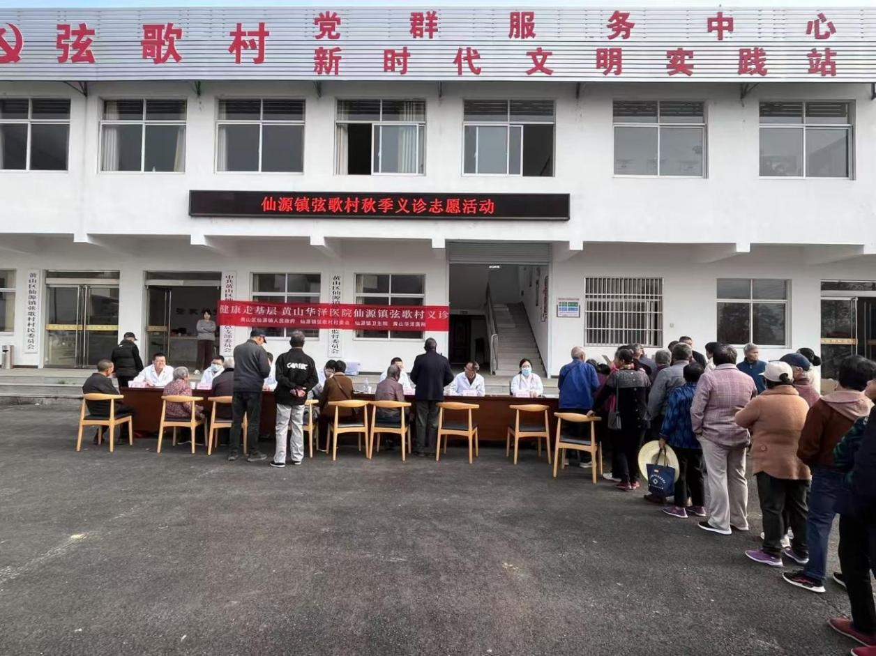 2025年10月25日,在黄山市黄山区仙源镇弦歌村的村委会广场上,一场以“健康服务进乡村,关爱群众暖人心”为主题的大型义诊活动顺利举行。本次活动由弦歌村驻村工作队牵头组织,邀请了黄山华泽中西医结合医院普外科、骨科、呼吸内科、消化内科、心内科、肾内科、内分泌科以及B超室的多位专家,为村民提供专业的健康咨询、疾病初步筛查等服务,把优质医疗资源直接送到群众“家门口”。