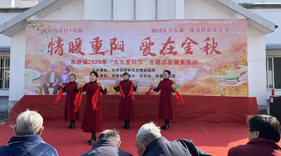 岁岁重阳,今又重阳。10月29日上午,六安金安区东桥镇庙岗敬老院内暖意融融、欢声阵阵,镇新时代文明实践所联合镇卫生院、文化站、团委、妇联,开展“情暖重阳 爱在金秋”主题志愿服务暨文艺汇演活动,为老年朋友送上节日关怀。
