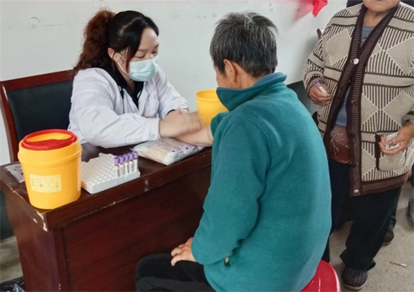 清晨,村医张燕早早来到现场,与村委会工作人员一同布置场地。随着老人们陆续到来,在乡镇卫生院医护人员的热情引导下,体检活动有序开展。本次体检不仅包括胸部X线摄影、糖化血红蛋白检测等项目,还针对老年人常见病、多发病提供了专业的健康咨询、用药指导和就医建议。