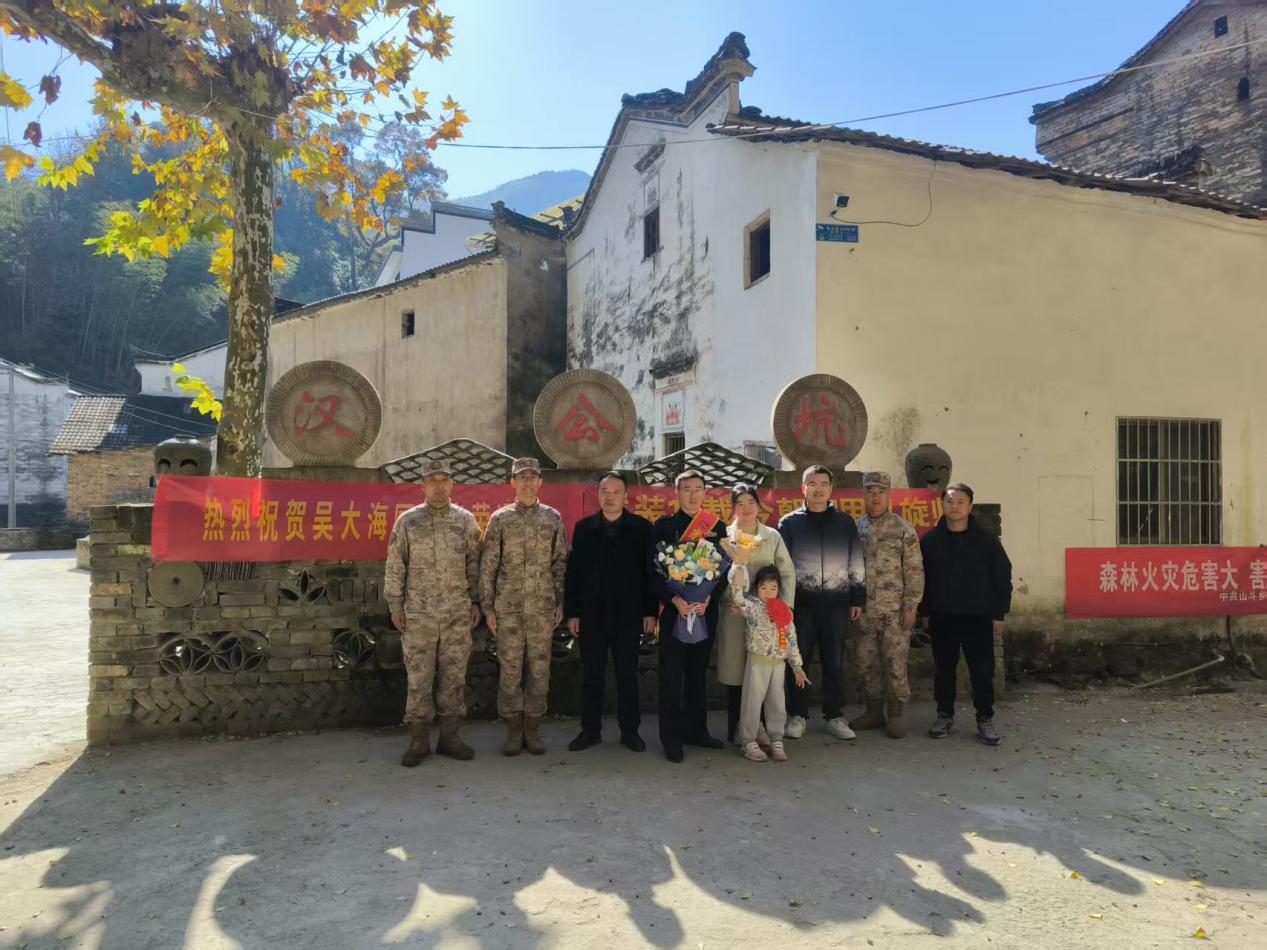 近日,休宁县山斗乡迎来了1名光荣退役的军人吴大海返乡。乡党委政府高度重视退役军人安置工作,乡村干部在其家门口举行简朴而热烈的欢迎仪式,乡退役军人服务站工作人员为他献上鲜花,传递家乡的温暖与敬意。