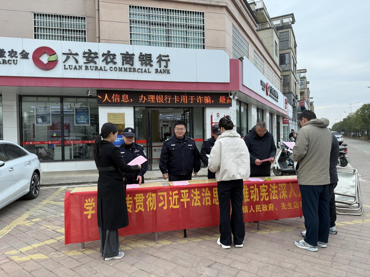 为深入学习宣传贯彻党的二十大精神,切实弘扬宪法精神,维护宪法权威,推动宪法全面实施,12月4日上午,六安先生店镇平安法治办联合镇司法所、团委、妇联、派出所等部门在镇农商行广场开展宪法宣传周展台活动。此次活动紧扣“大力弘扬宪法精神,建设社会主义法治文化”核心主题,让法治声音传遍街头巷尾,让宪法精神走进群众心中。