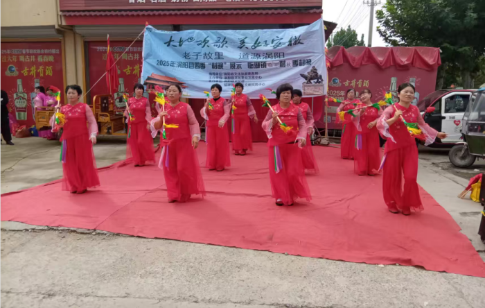 文艺演出在舞蹈《唱支山歌给党听》中热闹开场。紧接着豫剧选段、曲剧选段、歌曲等10多个特色节目轮番上演。演员们以优美的舞姿、纯正的唱腔、饱满的情绪一次次将演出气氛推向高潮,赢得了现场观众的阵阵喝彩,为村民们带来了丰富的文化盛宴。