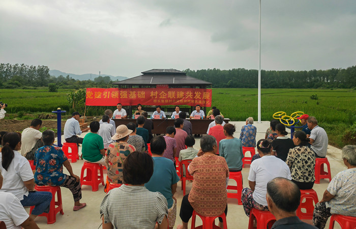 仪式现场,红色横幅在绿意田野的映衬下格外醒目,“党建引领强基础 村企联建共发展”的标语,既彰显了党建引领的红色内核,又传递出村企协作的发展热忱。