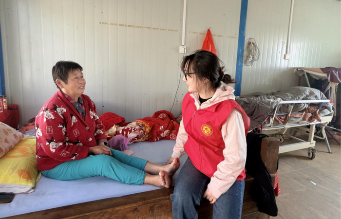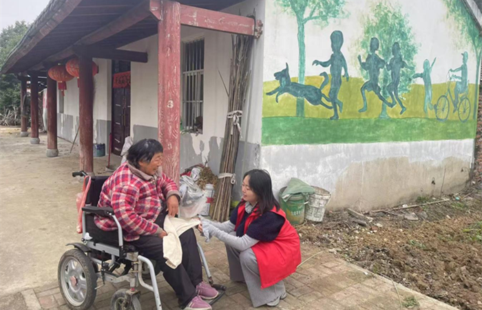 携手同行,传递希望。在镇东社区残疾老人谢长银家门口,志愿者陈娅萍蹲在轮椅前一边为老人整理衣着,一边详细了解老人的生活状况以及实际需求,并叮嘱老人用电、用气等安全事项。作为“龙”邻互助志愿服务项目的重要一环,志愿者通过结对帮扶,为“一老一小一困一残”群体提供个性化服务,践行“邻里一家亲”承诺。
