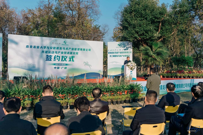 11月21日下午,南京农业大学与安徽震龙马术产业管理有限公司共建运动马产业技术研究院签约仪式在长三角国际马术赛事中心举行。
