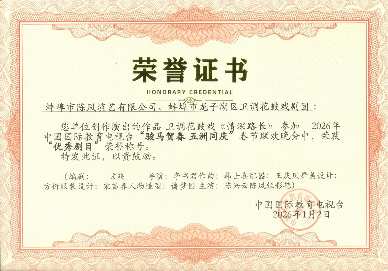 市场星报、安徽财经网(www.ahcaijing.com)、掌中安徽讯 一曲乡音韵悠扬,满腔为民情意长。作为安徽省怀远县“四好农村路”建设的艺术缩影,省级非物质文化遗产卫调花鼓戏作品《情深路长》,近日受邀参加2026中国国际教育电视台“骏马贺春 五洲同庆”春节联欢晚会录制。该作品以传统戏曲的独特魅力,向世界讲述中国乡村振兴的生动故事。作为压轴曲目演出后,收获诸多奖项。