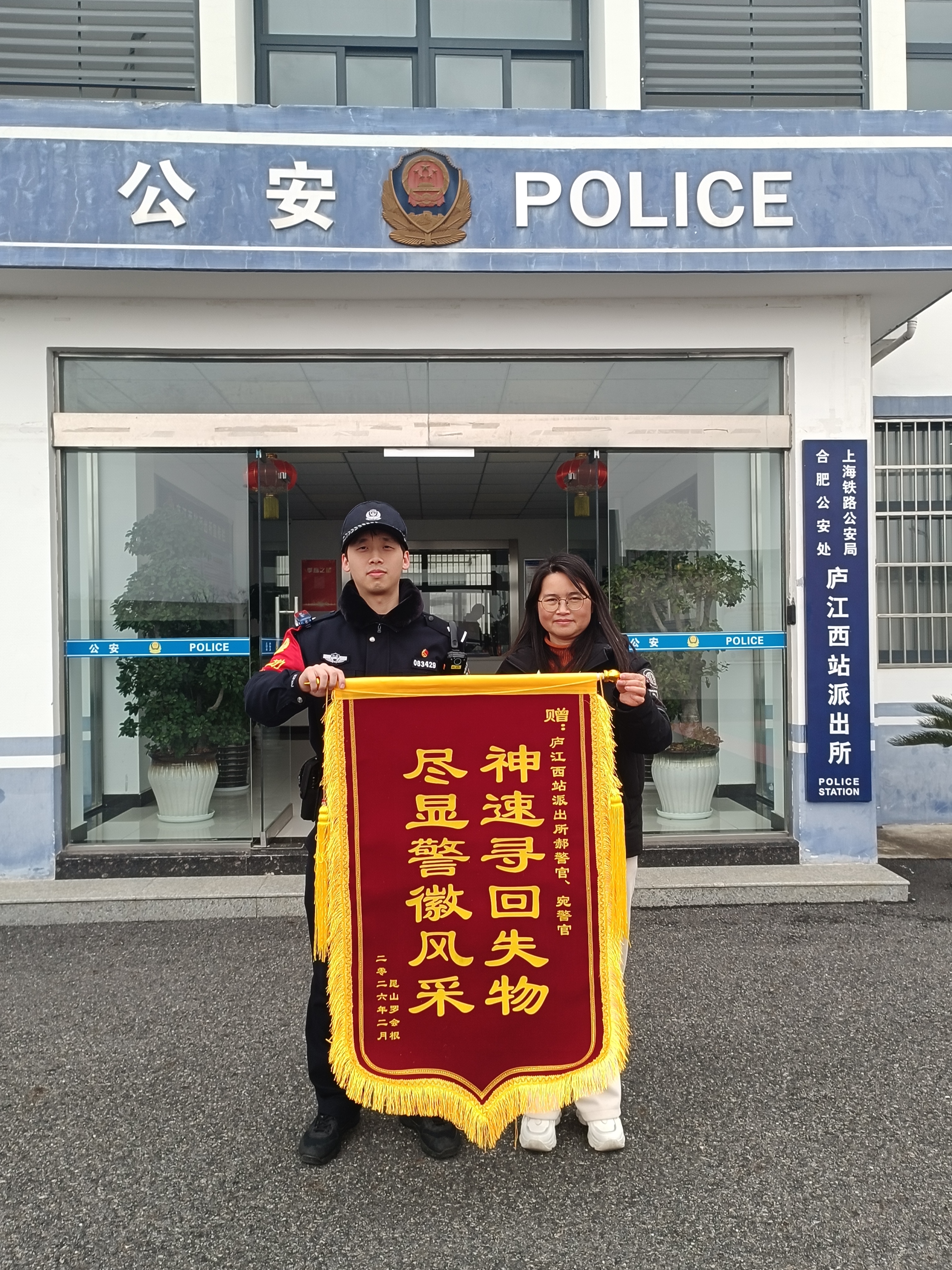 失而复得的罗某紧紧握住民警的手连连道谢,激动地表示,多亏了民警的高效办事,才避免了巨额财产损失和证件补办的诸多麻烦。面对失主的感谢,民警也提醒失主,出行时务必妥善保管随身贵重物品,下车前仔细检查,避免因疏忽造成财物遗失。为表达谢意,2月7日,罗某委托朋友专程赶到合肥铁路公安处庐江西站派出所赠送锦旗。此次暖心事件,体现了公安民警心系群众、高效为民的工作作风。平凡的善举传递着城市的温暖,民警用实际行动诠释了社会正能量,为旅客安全出行增添了亮丽底色。( 记者 袁鑫)