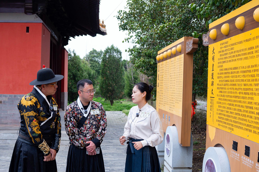 本次直播由博物馆深度讲解标杆品牌“大咖说”讲师巫鹏飞、自洋,携手明皇陵官方讲解员张云共同呈现,通过多平台同步直播,三位讲师全程身着庄重典雅的明制汉服开展讲解,与明皇陵庄严肃穆的历史环境相得益彰,生动体现了凤阳文旅“一朝步入凤阳,一日梦回大明”的理念。沉浸式的视觉呈现与专业讲解相结合,让观众在“看得见历史”的同时,更“走得进历史”,显著增强了传播效果和文化感染力。