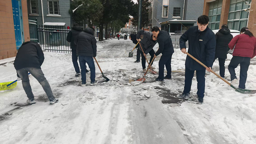 活动中,该行志愿者手持雪铲、扫帚等工具,分工协作、默契配合,积极投入清雪工作。行领导现场指挥,与志愿者一同奋战。大家不畏严寒,有的在路面均匀抛撒融雪剂,防止结冰;有的全力清扫道路积雪,将其推至路旁;有的专门铲除易滑区域积雪,排除通行障碍。经过数小时连续作业,小区主要道路、出入口的积雪被彻底清理,关键路段均已完成融雪剂抛洒,有效防止路面结冰,保障了居民出行畅通。
