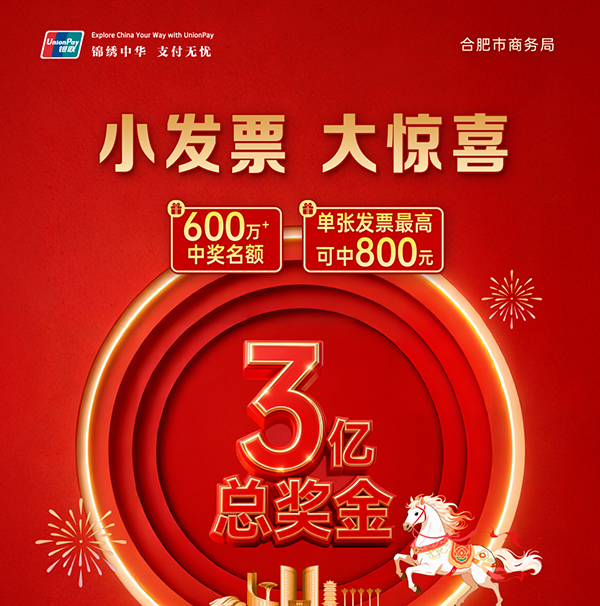 本次活动采用即时开奖和定期开奖两种方式,以即时开奖为主,定期开奖为辅。根据 “新岁添彩”“春意焕新”“嗨购盛夏”三期活动计划,奖项分三期设置,每期开奖金额初步设置为1亿元,总奖金合计3亿元。在具体实施过程中,根据活动效果,合肥市商务、财政和税务等部门将对奖项设置、开奖金额、中奖概率等内容进行动态调整。