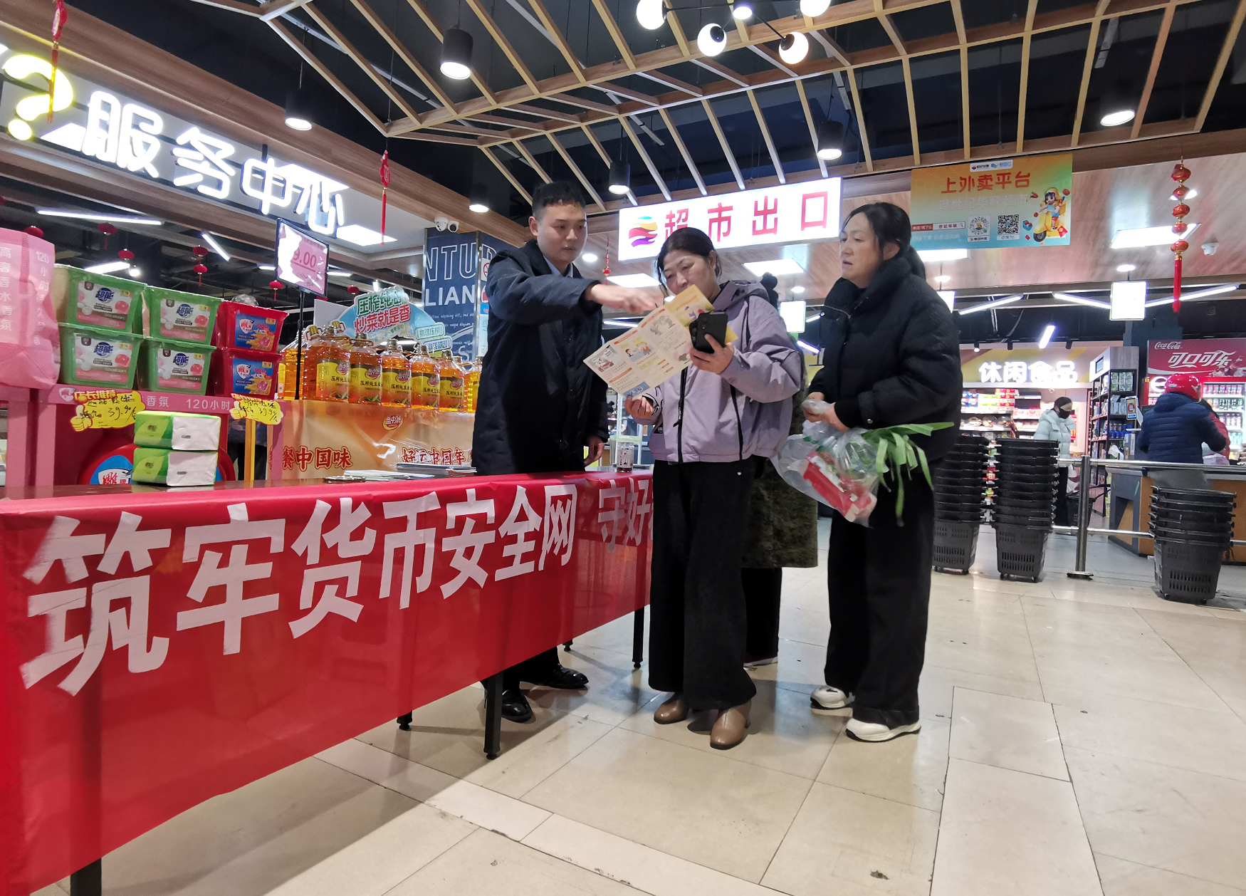为进一步扩大宣传覆盖面,提升宣传的针对性和有效性,邮储银行岳西县支行组织业务骨干走出厅堂,深入辖区大型商场、超市、集贸市场等人流密集、现金使用频繁的场所,设立临时宣传咨询台,开展“面对面”、“点对点”的精准宣传。