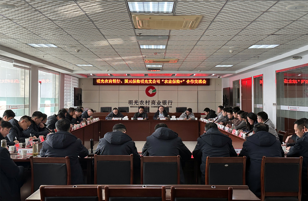 市场星报、安徽财经网 (www.ahcaijing.com)、掌中安徽讯 (华润雨) 为深化银保合作,推动“农业保险+”多维度模式落地见效,助力乡村振兴,1月16日,国元保险明光支公司与明光农商银行召开“农业保险+”合作交流会。国元保险明光支公司主要负责人及驻点员、明光农商银行分管行领导、普惠金融部负责人及各信贷网点负责人参会。
