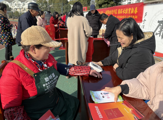 与书法区相映成趣的,是设立在广场东侧的“暖心服务驿站”。镇卫健办工作人员正为老人测量血压,针对冬季常见病开具“健康处方”;妇联干部手持《妇女权益保障手册》,用方言讲解反家暴法要点,引得围观的妇女们频频点头。最受欢迎的是“政策咨询台”,工作人员现场解答医保报销、创业补贴等民生问题,发放宣传资料300余份。新婚李女士笑着说:“既能领到手写春联,又搞懂了生育津贴政策,这个年过得既喜庆又踏实。”