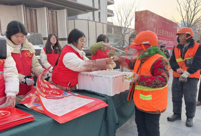 近日,泗县的大街小巷升腾起香甜的热气。由泗县新时代文明实践中心、泗县总工会共同主办的“腊八送福 情暖泗州”主题活动在各点位同步开展,志愿者们将一碗碗腊八粥、一幅幅红“福”字送到市民手中,传递着冬日的温暖。