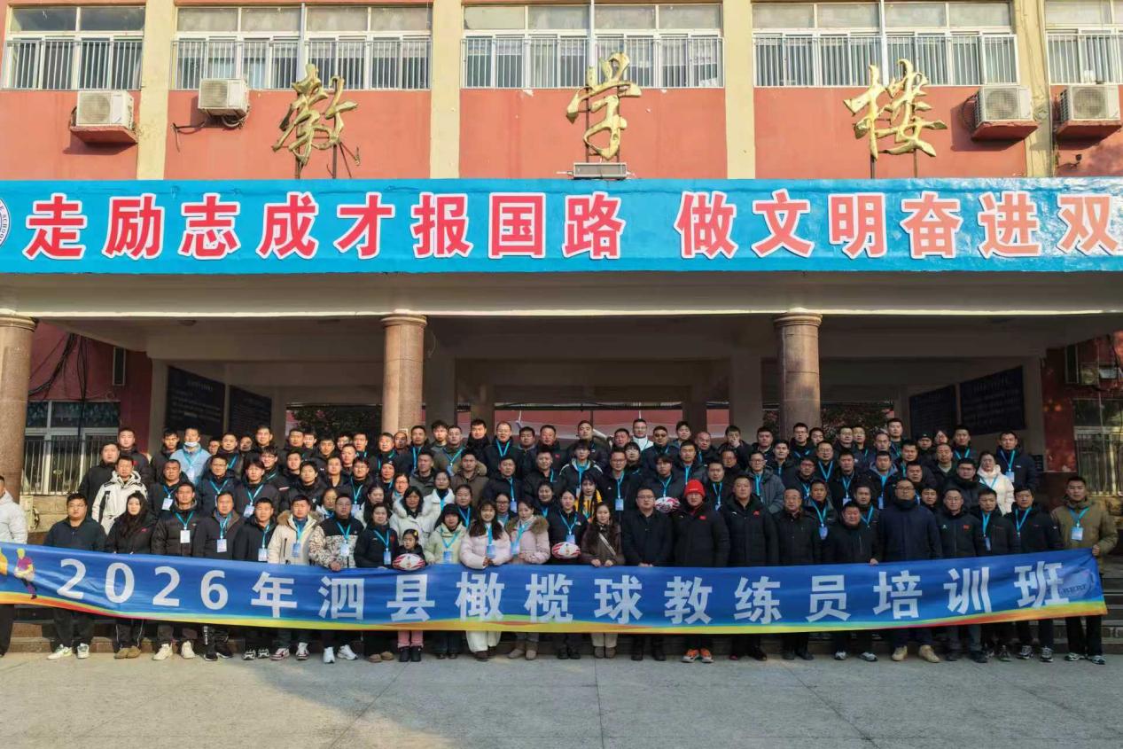 近日,由泗县教育体育局主办、泗县双语中学(泗县体育运动学校)承办的2026年泗县橄榄球教练员培训班正式启动。来自全县中小学的一百余名体育教师参加培训,旨在进一步提升泗县橄榄球项目教学与训练水平,推动体教融合发展。