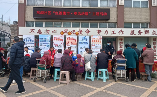 为深化党建引领基层治理,把暖心服务送到居民家门口,近日,淮北市杜集区高岳街道东湖社区以“红淮集市 春风送暖”为主题,联合东湖社区卫生服务站、物业服务企业等多家单位,开展一站式便民服务活动,让居民在暖春来临的时节感受到党组织的温暖。