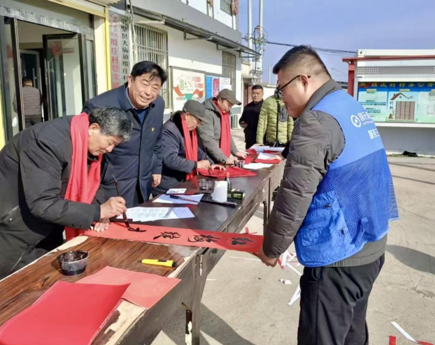 国元保险灵璧支公司联合当地书法协会,走进大庙镇殷庄村,举办了“迎新春、送春联、传农险、惠三农”公益活动。活动现场,书法家们挥毫泼墨,为村民书写寓意吉祥的春联与福字,村民们纷纷驻足挑选,现场气氛热烈。与此同时,工作人员向村民们详细讲解了农业保险保障范围及理赔流程,将农业保险的惠农政策送到村民家门口。此外,游集服务部在活动现场同步开展了打击非法金融、防范非法集资的宣传,有效普及了金融安全知识。