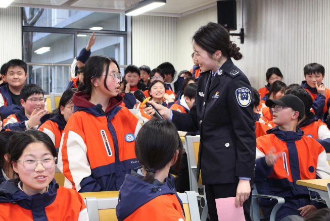 “遭遇校园欺凌,第一步该做什么?”“网友称免费赠送游戏皮肤,需要点击陌生链接,可以点击吗?”为推动法律知识入脑入心,活动采用“互动式”宣讲模式,通过法律知识抢答、现场提问答疑等形式,将“被动接受”转变为“主动学习”,有效调动了学生参与的积极性。学生们踊跃举手、积极作答,在互动交流中深化了对法律知识的理解,切实掌握了自我保护的方法和技巧。