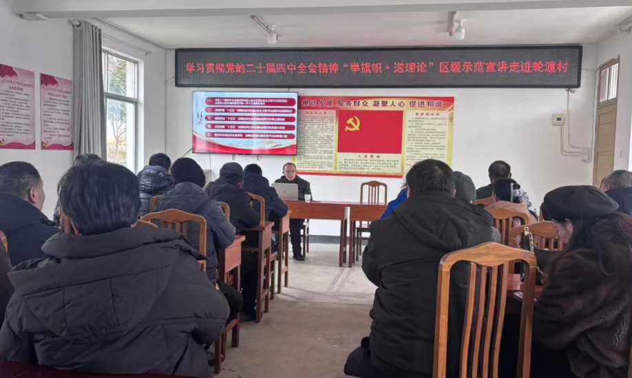 1月27日下午,黄山市黄山区龙门乡轮渡村新时代文明实践站内学习氛围浓厚。区委党校校委、行政科科长王斌应邀来到基层,为轮渡村全体党员带来了一场主题鲜明、内容深刻的专题授课,深入解读党的二十届四中全会精神。轮渡村全体党员参加了此次学习活动。