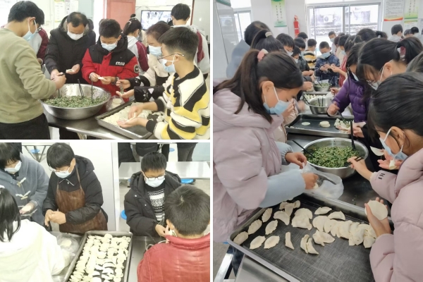 活动中,住校老师们化身“家长”,手把手教同学们揉面、调馅,食堂阿姨则在一旁指导煮制技巧。对于父母常年在外务工的留守儿童来说,集体包饺子的热闹场景让冬日的校园充满了烟火气。八年级一学生说:“和同学们一起包饺子,比自己在宿舍看书有意思多了,吃着自己包的饺子,心里暖暖的。”