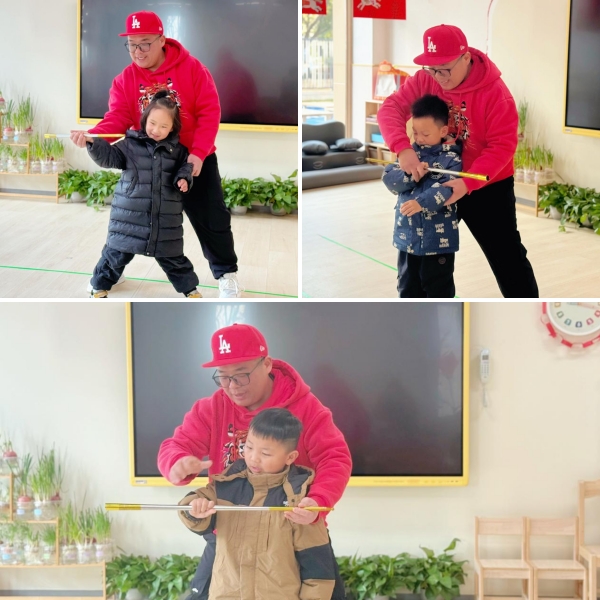 欢声笑语,洒满了整个活动室。在这片快乐的海洋里,孩子们手握金箍棒跟着认真学招式,一招一式满是童真活力,我们看到的不仅是孩子们笑盈盈脸庞上的欢喜与雀跃,更看到了传统文化的魅力与勇敢自信的品格在童趣中悄然生长。