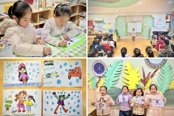 在趣味十足的实践环节,孩子们化身“小小创作家”,用画笔将防寒防滑知识绘成生动宣传画,再以“小小宣讲员”身份向同伴讲解。在创作与分享中,安全知识变得直观有趣,安全意识也在互动传递中生根发芽。